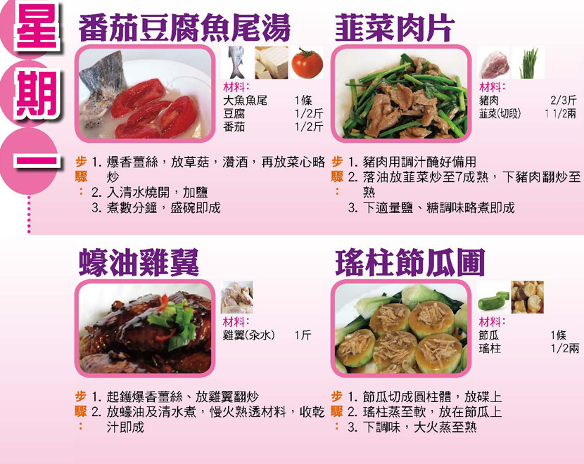 食物環境衛生署誠意向公眾推介''今日買乜餸'',好讓各位從此無需傷腦筋,輕輕鬆鬆煮好每一天!為照顧各人士的需要,食譜附有中文、英文、菲律賓文及印尼文供參閱。
