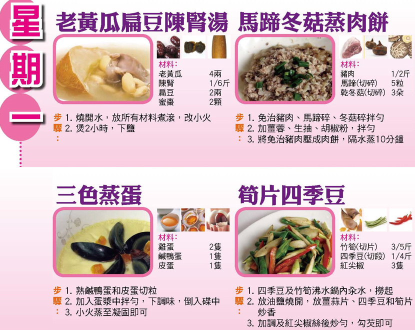 按此可閱覽英文、菲律賓文及印尼文食譜