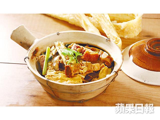 ③打開蓋,炸枝竹先加入鑊中,燜5分鐘,再加入未炸枝竹,繼續燜15分鐘。最後下生粉芡水埋芡即成。