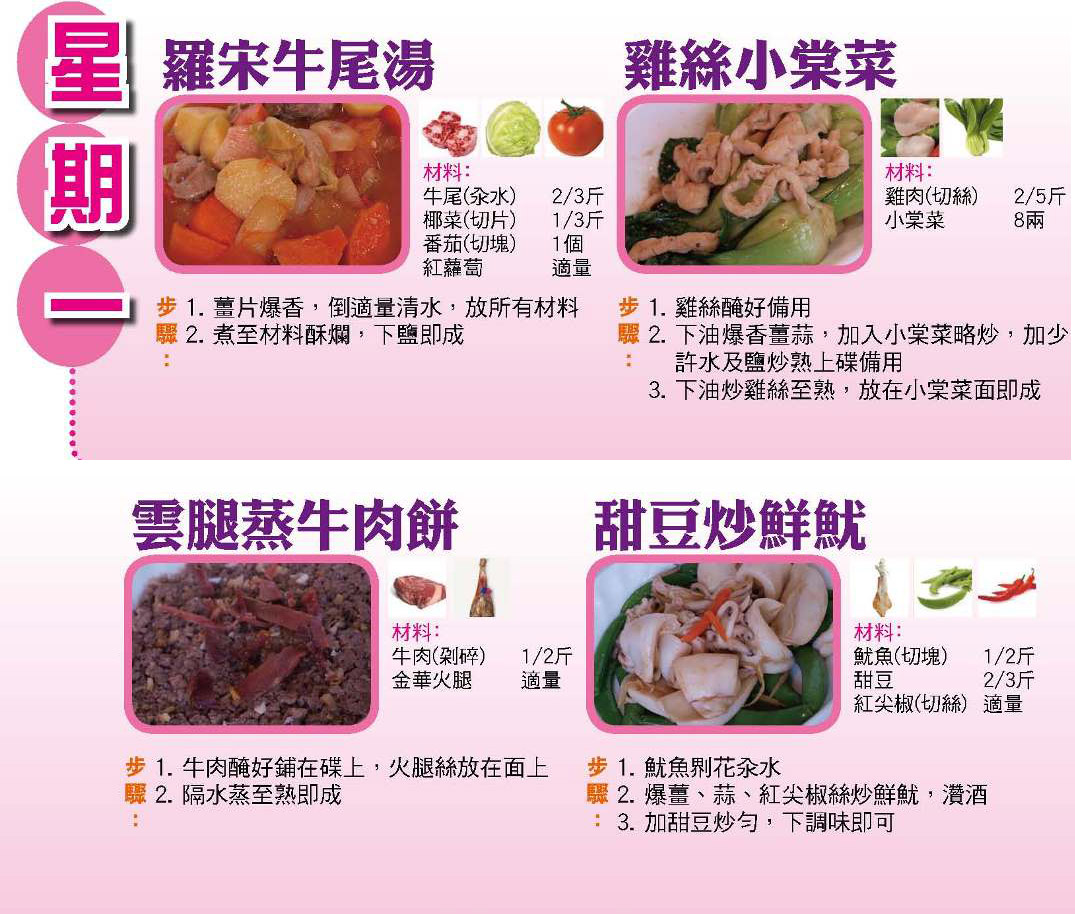食物環境衛生署誠意向公眾推介''今日買乜餸'',好讓各位從此無需傷腦筋,輕輕鬆鬆煮好每一天!為照顧各人士的需要,食譜附有中文、英文、菲律賓文及印尼文供參閱。
