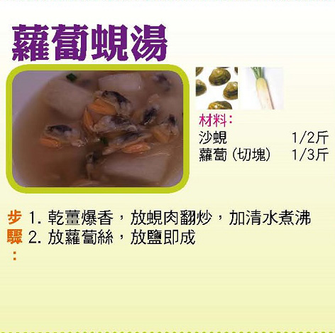 2019年09月24日 食物環境衛生署誠意向公眾推介''今日買乜餸'',好讓各位從此無需傷腦筋,輕輕鬆鬆煮好每一天! 今日三餸一湯食譜推介: 星期二 蘿蔔蜆湯 芙蓉蛋 鮮蝦燴白菜 甘筍冬菇扒肉絲 資料來源 資料轉載自《食物環境衛生署網頁》,並根據香港特別行政區政府批出的特許複製。版權所有。 0 0 0 書籤 留言 (0) 登入即可留言 happybos 2025年01月17日 15:04 thx 1 舉報