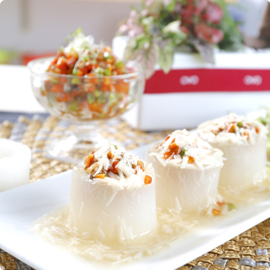 食譜以素上湯先蒸燴白蘿蔔,更能帶出白蘿蔔的鮮甜味道。