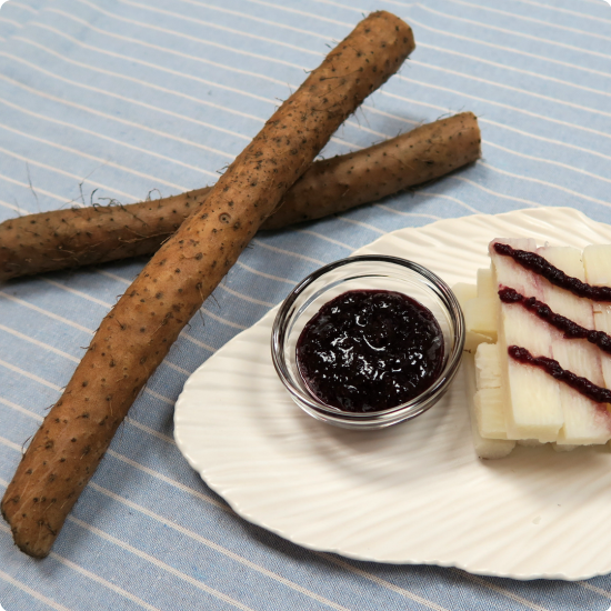 一見到「淮山」大家必先想起常用作煲湯的乾淮山,而今次教大家做的「藍苺鮮淮山」用的則是新鮮淮山。新鮮淮山簡單煮數分數後口感爽脆,滋陰能力比乾淮山強,當中的黏蛋白有穩定血糖的功效,加上涼拌的做法可保存更多的蛋白質和澱粉酵素,三高人士都適宜食用。