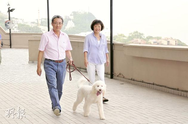 圖1:對梁智仁來說,「運動應該是樂趣」。有了愛犬Ms. Muffin與太太梁許安璞(右)相伴步行做運動,最愉快。(相片由受訪者提供)