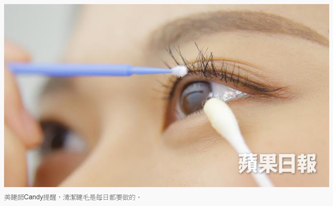 眼睛每日都分泌油脂,空氣亦有污染物和塵埃,所以清潔睫毛是每日都要做的。除化妝女生要徹底卸妝外,即使不化妝的女生都要日常清潔睫毛,用平日用開的洗面奶或潔面乳,稀釋後再用棉花棒或睫毛清潔棒沾上,輕輕抹拭睫毛,最後用清水洗淨即可。睫毛的深層清潔大概一星期做一次,用睫毛清潔液配合睫毛清潔棒,清潔和按摩每根睫毛,可去除油脂分泌。一般睫毛的新陳代謝期是28日,若沒勤力清潔睫毛,會令毛囊阻塞,減慢代謝,變相令睫毛生長變慢。
