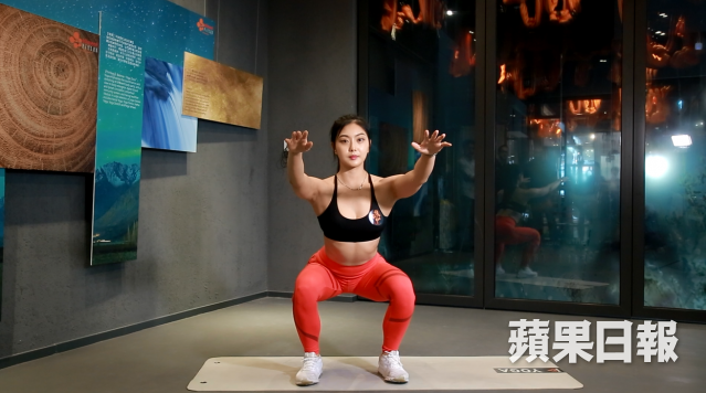 正所謂「六月不減肥,七月徒傷悲」,女生們夏季最常穿短裙和短褲,腿部要常見人,當然要重點鍛鍊大腿肌肉,務求看上去更結實。Lyn示範的腿部運動主要集中訓練大腿肌肉,當中有三個動作,而每一個動作需做5組,一組為15下。需要注要的是,做運動前建議做適量熱身,和注意動作幅度範圍不要太窄。