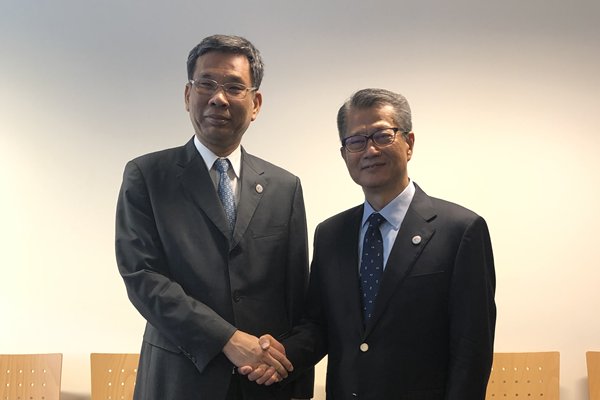 陳茂波感謝中央政府一直支持香港在「一帶一路」建設發揮國際金融中心的角色,並歡迎財政部在港發行人民幣國債,鞏固香港作為全球離岸人民幣業務樞紐的地位。