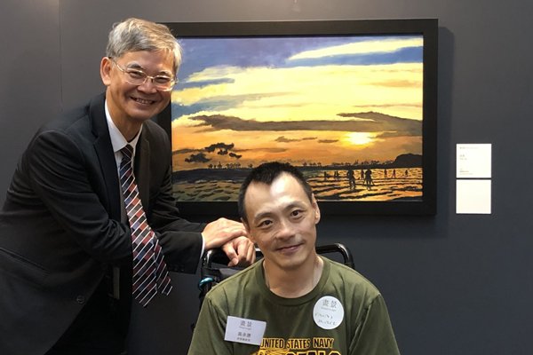 是次畫展源於去年11月舉辦的行政長官傷健共融高峰會,當日的專題討論環節邀得香港展能藝術會主席林彩珠以及兩位展能藝術家黃永康(康仔)及盧佩鏞分享經驗。其間,康仔表達最希望能夠有機會展示自己的作品,行政長官隨即作出正面回應,宣布為展能藝術家舉辦畫展,以鼓勵藝術共融。在過去大半年,勞工及福利局的同事與香港展能藝術會積極跟進,加上康樂及文化事務署的協助,畫展得以在香港文化中心舉行。今次的畫展,我的首選作品便是康仔的白泥看日落油畫,它令我想起梵谷(Vincent van Gogh)的一些早期作品。
