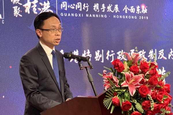 (以上是政制及內地事務局局長聶德權7月25日在廣西出席「中國香港(地區)商會---廣西南寧分會成立儀式」的致辭全文)