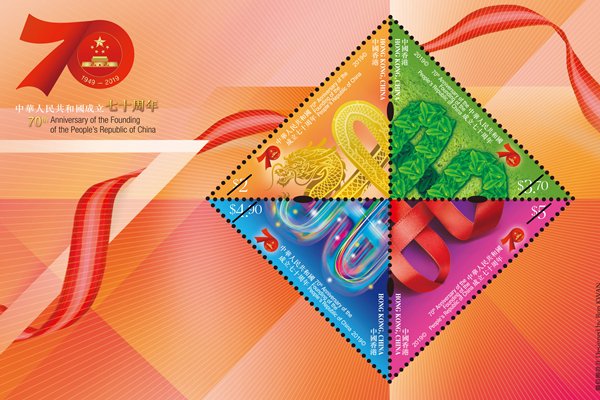 香港郵政於10月1日國慶日以「中華人民共和國成立70周年」為題發行一套四枚郵票和一張郵票小型張,並與中國郵政、澳門郵電同日聯合發行一款郵票小冊子,以串連方式展示三地郵政以國慶為題而發行的郵票小型張,共賀國慶。