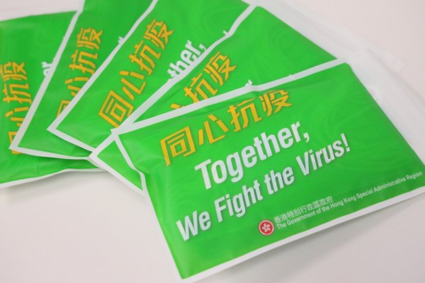 有關口罩乃政府在本地口罩生產資助計劃下首批採購所得,旨在與民共享,同心抗疫。每戶會獲派一包,內附十個一次性的成人口罩。