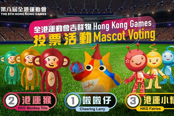為加強宣傳港運會,大會設計了三組吉祥物,市民即日起至下月31日可在港運會網頁投票,得票最多的設計將成為大會吉祥物。