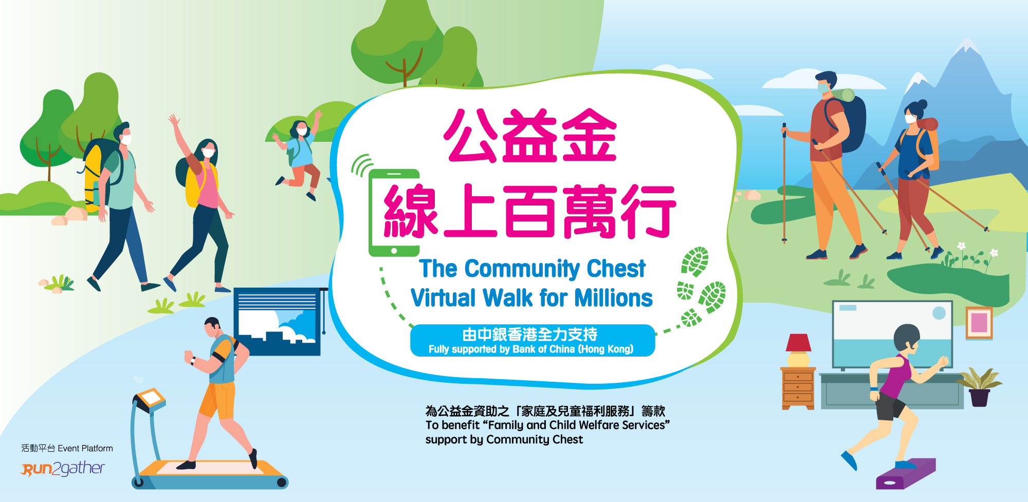 每人只需在指定時間内完成目標10,000步,同時爲公益金籌款。