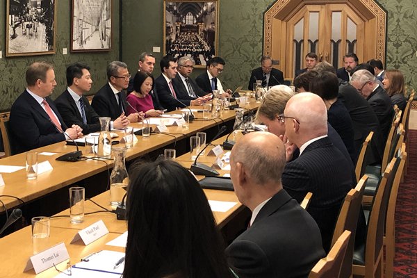 財政司司長陳茂波繼續倫敦之行,與英國商界和銀行界會面,鼓勵他們借助香港把握「一帶一路」倡議和粵港澳大灣區發展的龐大商機。