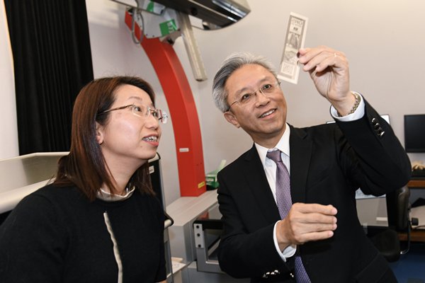 檔案修復: 羅智光(右)了解政府檔案處製作縮微膠卷的工作。