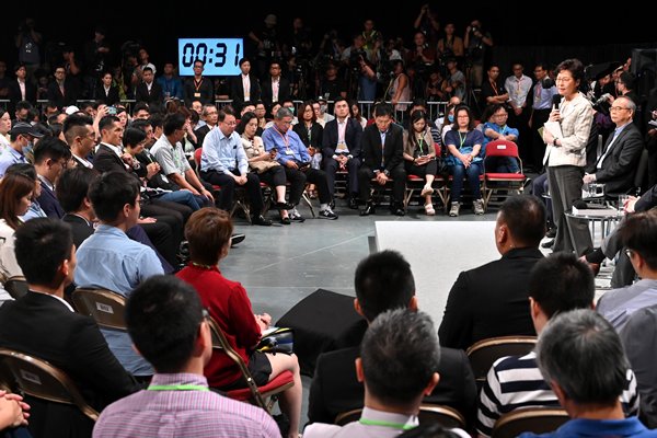 張建宗五日出席行政會議前會見傳媒,指政府一直與市民進行閉門深度對話,每次參與人數約20人或以下,人數不多,有助雙方深入探討問題。