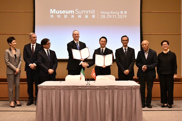 康樂及文化事務署署長劉明光二十八日與大英博物館主席理查德.蘭伯特、烏菲茲美術館館長Eike Schmidt簽署諒解備忘錄,進一步加強香港與兩間世界著名博物館的文化交流和合作。