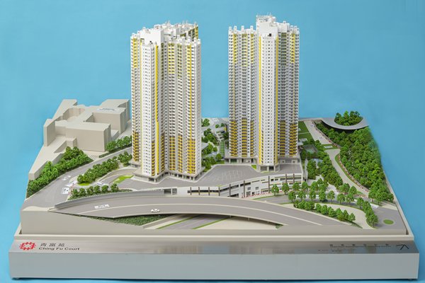 建築模型: 蝶翠苑和青富苑「綠置居」項目下周五接受申請,青富苑提供2,868個單位,平均售價為每平方米58,800元。