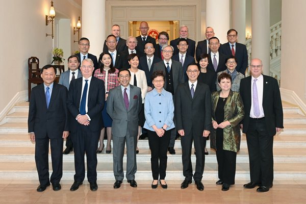 林鄭月娥感謝教資會20多名海外和本地成員在唐家成領導下,就資助大學的撥款分配、香港高等教育策略性發展,向政府提供寶貴意見。
