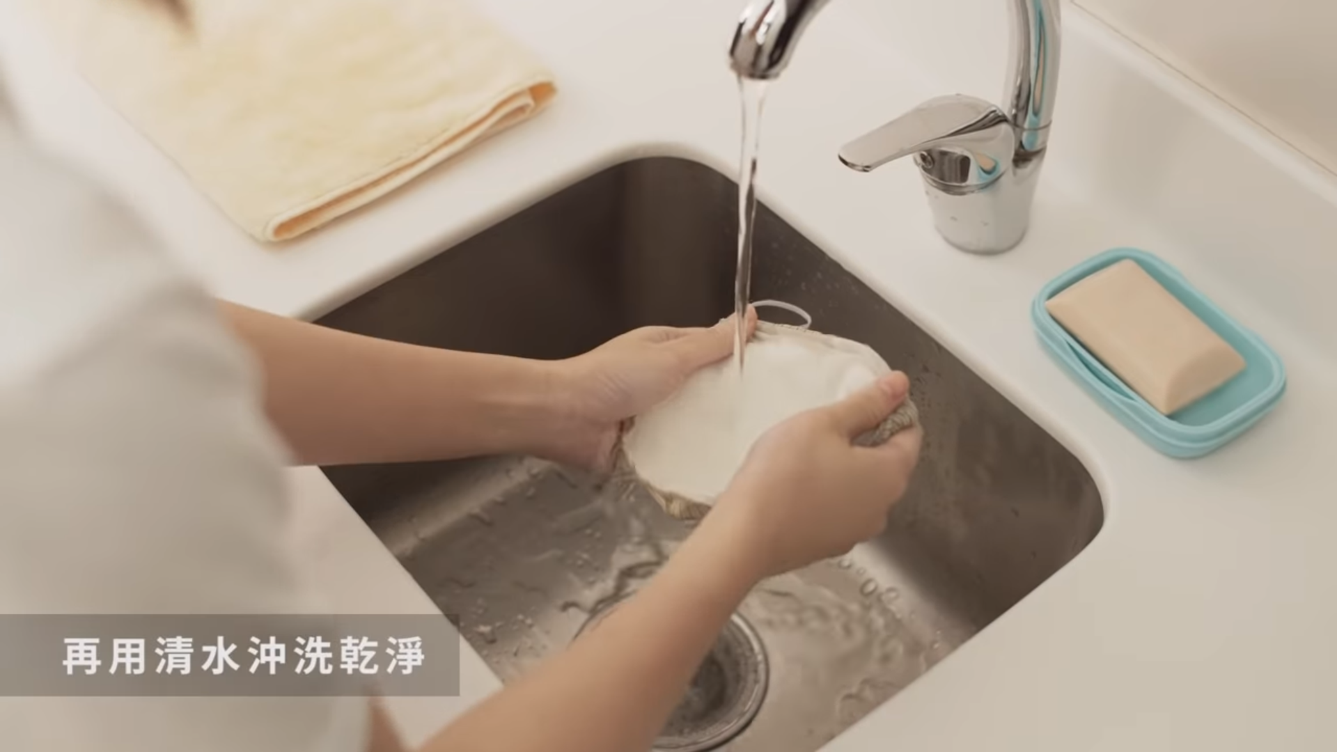 - 用肥皂及冷水單獨手洗,在水中輕輕攪動和按壓。