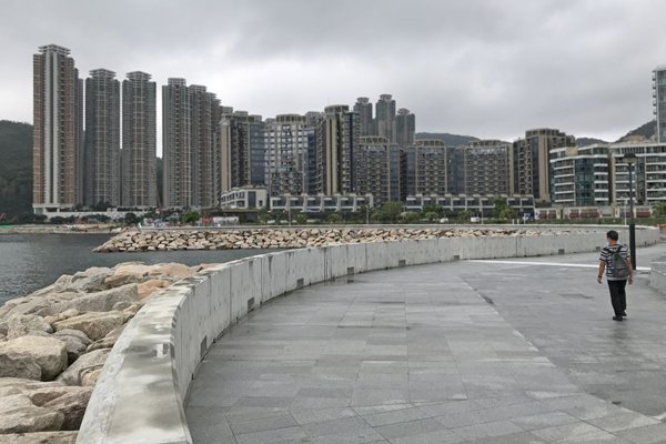 加固堤防:土木工程拓展署在將軍澳海濱公園加建全長約600米、高約1.1米的防浪牆,以減低風暴期間越堤浪對沿岸居民和設施的威脅。