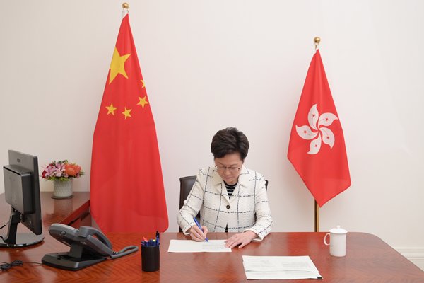 《中華人民共和國香港特別行政區維護國家安全法》由香港特別行政區在香港公布實施,有關公布已由行政長官林鄭月娥簽署,並於今晚刊憲生效。