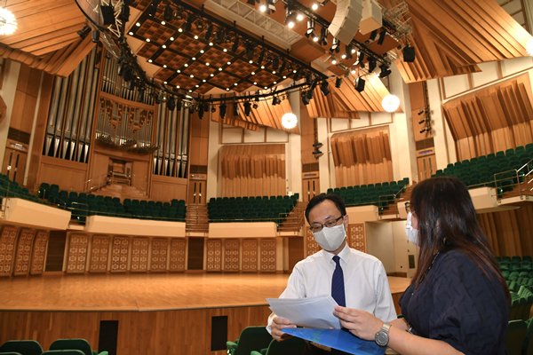 文化中心早前在閉館期間安排清潔和設施翻新,徹底清潔音樂廳天花板和回音板,並在洗手間裝置自動感應水龍頭和沖水設施,以進一步減低病毒傳播風險。