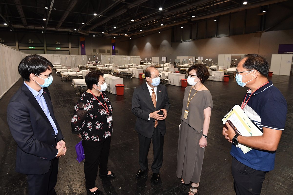 政務司司長張建宗7月23日到亞洲國際博覽館視察新增的檢疫和社區治療設施。