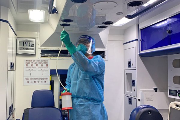 他說,當署方知道要執行相關工作後,已為同事提供相應的訓練和指引,例如教導前線人員如何穿好個人防護裝備,以免在工作時接觸到傳染性的病原體。至於當中最大的挑戰,則是要為接載過確診2019冠狀病毒病個案的車輛消毒,因為通常屬突發性質,所以當收到有關要求時,同事需要即時放下手頭上的工作去處理,抽調人手為救護車進行消毒。
