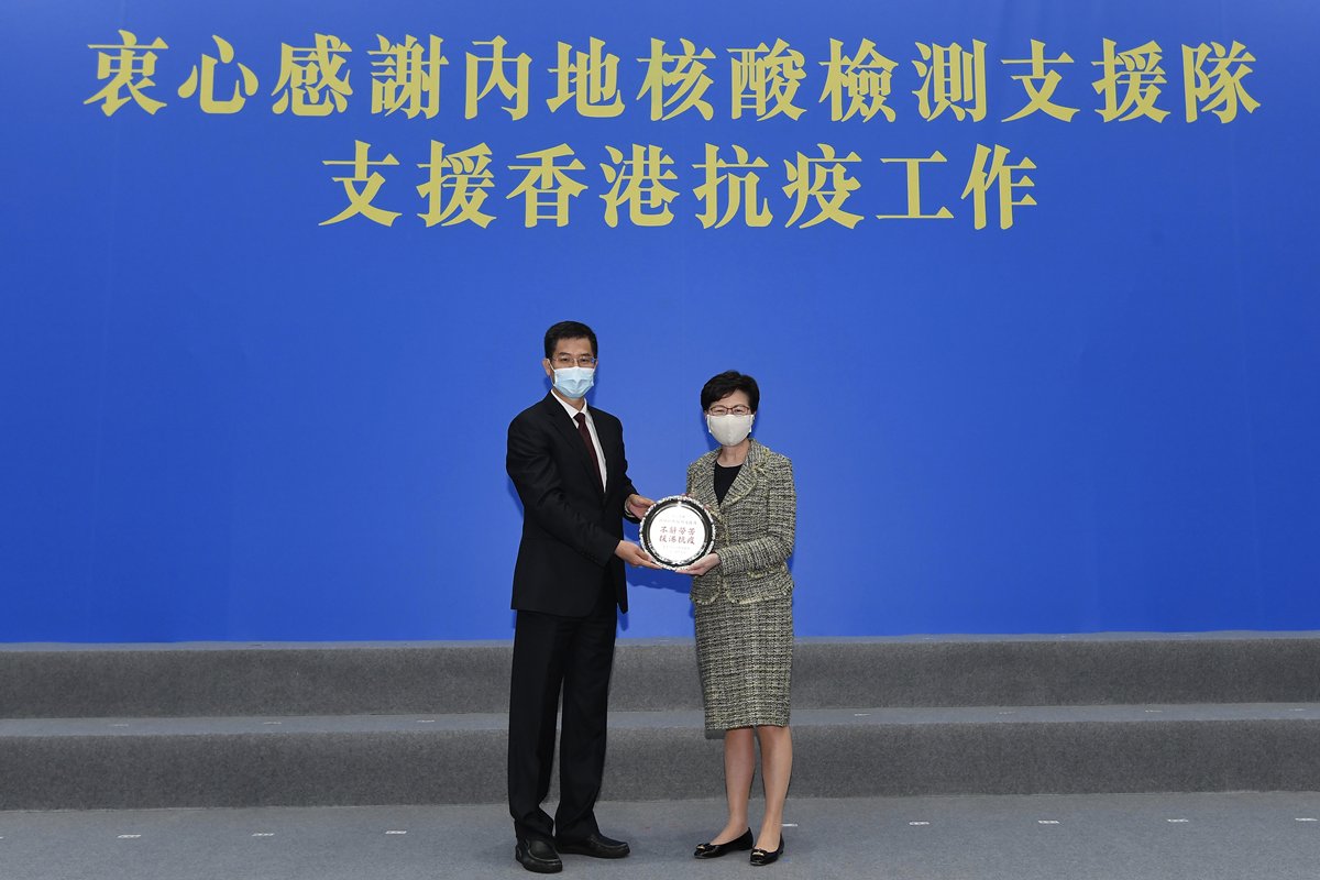 她說,短時間內完成接近180萬個檢測是艱巨而光榮的任務,是火眼實驗室內每位工作人員辛勞工作的成果,也承載着中央和內地人民對香港同胞的關懷和支援。她代表香港特區衷心感謝中央政府和支援隊成員。