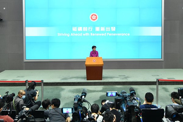 林鄭月娥11月25日下午在記者會上闡述施政報告內容時說,若要透過全民檢測達到「清零」的目標,檢測需要在最短時間內進行,同時實施全面禁制令,封鎖整個城市,不准進出,所有人留在家中。