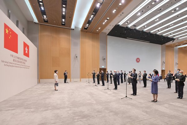 政府表示,副局長和政治助理宣誓擁護《基本法》和效忠香港特區,就他們的責任許下莊嚴的承諾,向社會真切體現他們對《基本法》和香港特區的忠誠和承擔,將增強公眾對政治委任官員的信心,意義重大。