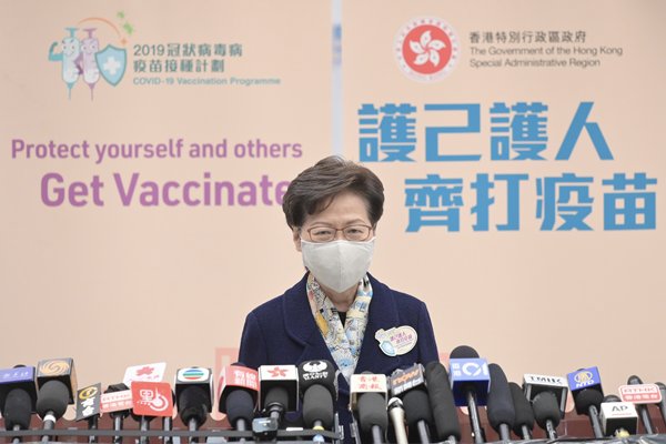 林鄭月娥3月22日會見傳媒時表示,新冠疫苗接種計劃實行近一個月,以16歲或以上才可接種的人口計算,接種率約5.3%,這比率不算差,但可做得更好。