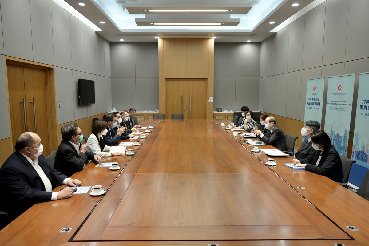商務及經濟發展局局長邱騰華則與香港中華出入口商會、香港中華廠商聯合會的代表會面,重申完善選舉制度的必要性、迫切性,以及對創造穩定營商環境和確保香港繁榮穩定的重要性,並呼籲社會各界包括工商界全力支持有關修訂。