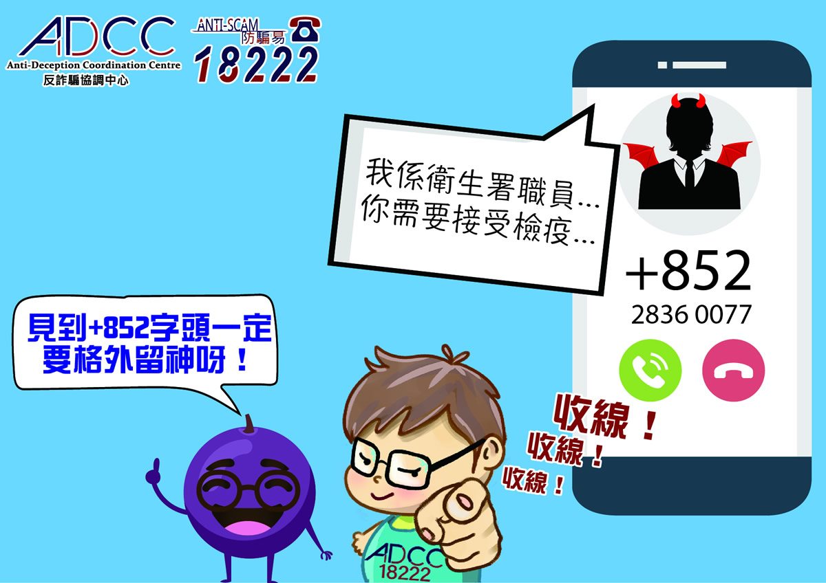 - 為協助識破電話騙案,通訊事務管理局辦公室規定各電話營辦商必須在流動電話的「來電顯示」中加入「+」號,以識別源自香港境外的來電。如接到「+852」字頭的陌生來電,即表示該來電是假扮本地來電,很可能是詐騙電話;