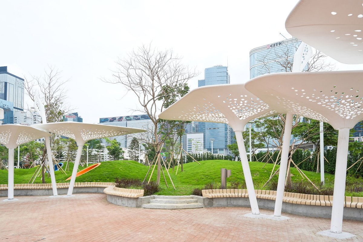 新開放的空間面積約7,800平方米,以草地為主,並設置多款涼亭、桌椅和觀景小丘,讓遊人閒坐歇息,欣賞遼闊的維港景致。