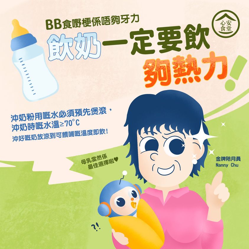 不過,當未能以母乳餵哺嬰兒而需要選擇嬰兒配方奶粉(奶粉),在沖奶時有甚麼食安要點需注意呢?不如讓我們最有牙力的金牌陪月員Nanny Chu 跟各位分享一下吧~