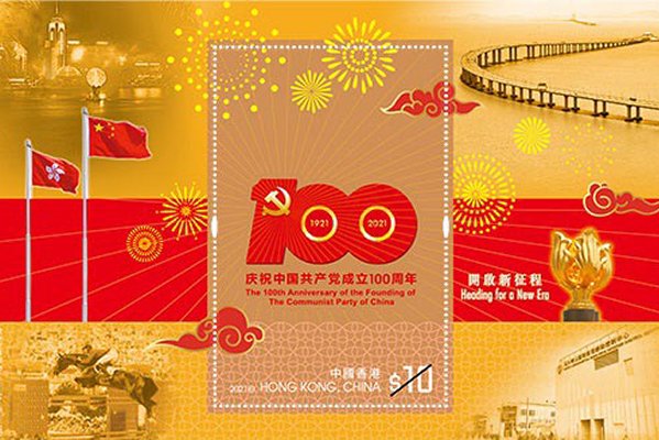 香港郵政7月1日發行紀念郵票,以誌中國共產黨成立100周年。