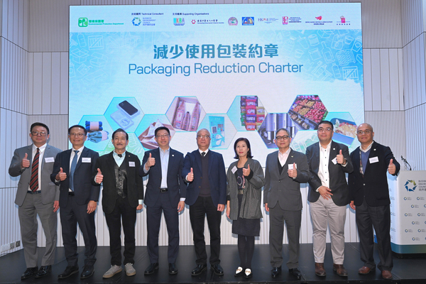 環境保護署推出《減少使用包裝約章》計劃,鼓勵企業重新檢視和減少包裝使用,在商業活動中建立減廢文化,協助香港邁向零廢堆填及碳中和的長遠願景。環境及生態局局長謝展寰為計劃主持啟動禮並致辭。