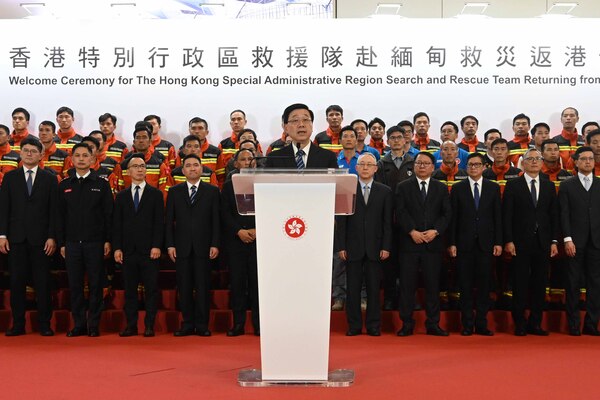 香港特區政府派遣前赴緬甸地震災區協助搜救工作的救援隊伍完成任務後,4月9日晚上返抵香港。行政長官李家超於香港國際機場迎接特區救援隊返港,並向救援隊致敬。
