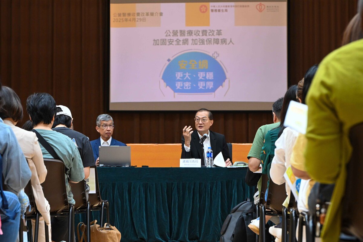 醫務衞生局連同醫院管理局4月29日舉辦首場公營醫療收費改革區議會簡介會,醫衞局局長盧寵茂出席簡介會,向超過200名區議員和地區人士詳細講解公營醫療收費改革的內容,特別是加強保障病人的措施。