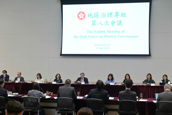 政務司副司長卓永興5月22日主持地區治理專組第八次會議。他表示,隨着完善地區治理體系全面實踐,各項政策措施按照地區治理領導委員會定下的策略方針貫徹執行,地區設施和環境衞生已取得實質改善。