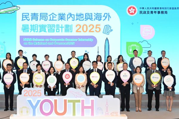 民青局企業內地與海外暑期實習計劃20256月13日舉行啟動禮,政務司司長陳國基、民政及青年事務局局長麥美娟連同參與計劃的企業代表主持儀式。