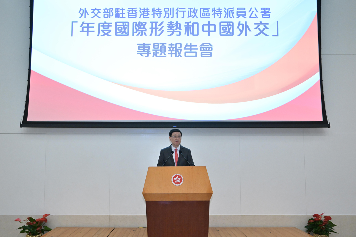 李家超指出,複雜多變的國際形勢和人工智能與生物科技的顛覆性發展深刻影響世界格局走向,也突顯安全與發展的密切聯繫。他表示,國家的外交工作在有效統籌安全和發展方面發揮至關重要的作用,也為香港帶來更好發揮超級聯繫人和超級增值人角色的機遇。
