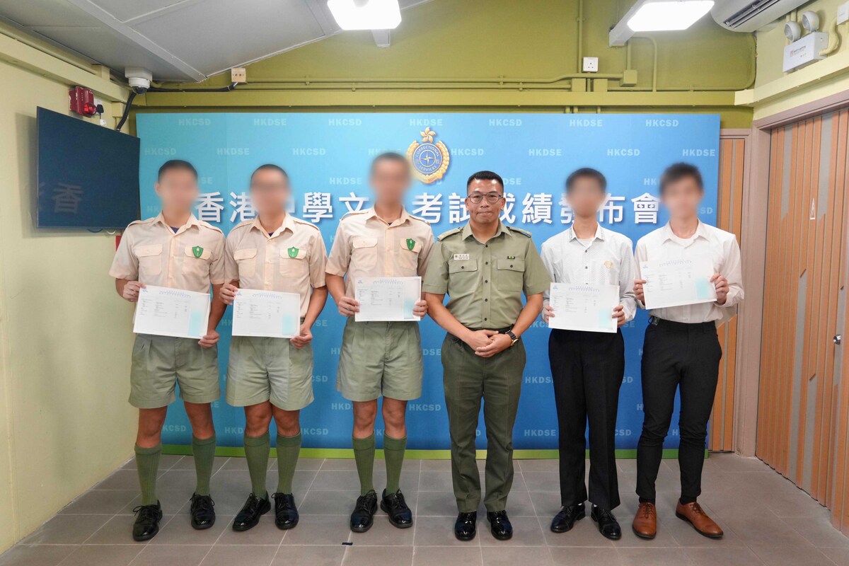 懲教署表示,四名考生考獲符合入讀本地大學的基本入學要求,其中沙咀懲教所一名考生考獲五科共20分成績,他在公民與社會發展科的成績達標,中國語文科和數學科更分別考到5*及5的佳績。