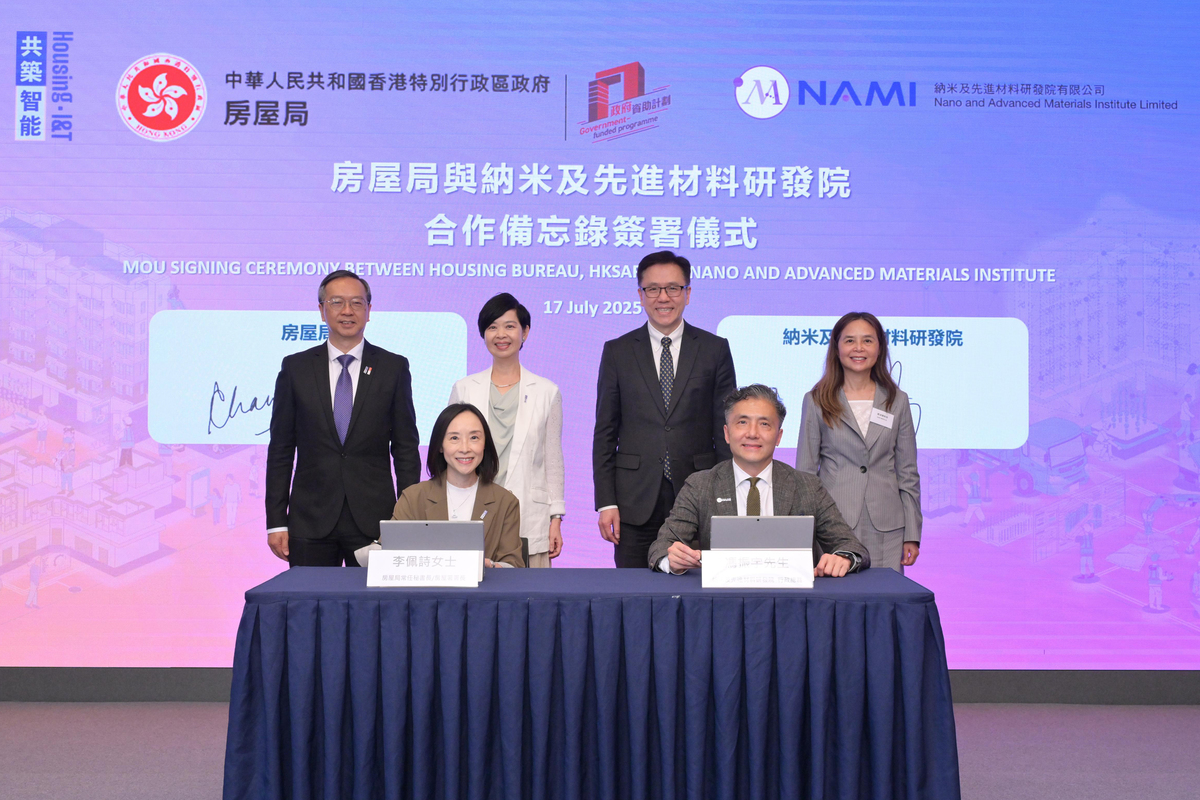 房屋局與納米及先進材料研發院7月17日簽署合作備忘錄,建立策略夥伴合作關係,結合研發院在先進材料領域的尖端專業技術與房屋委員會的公營房屋驗證平台,加速新型建築材料的驗證與落地,同時透過專利保護與商業化機制,打造可持續的科技發展模式,助力香港建設為區域知識產權貿易中心。