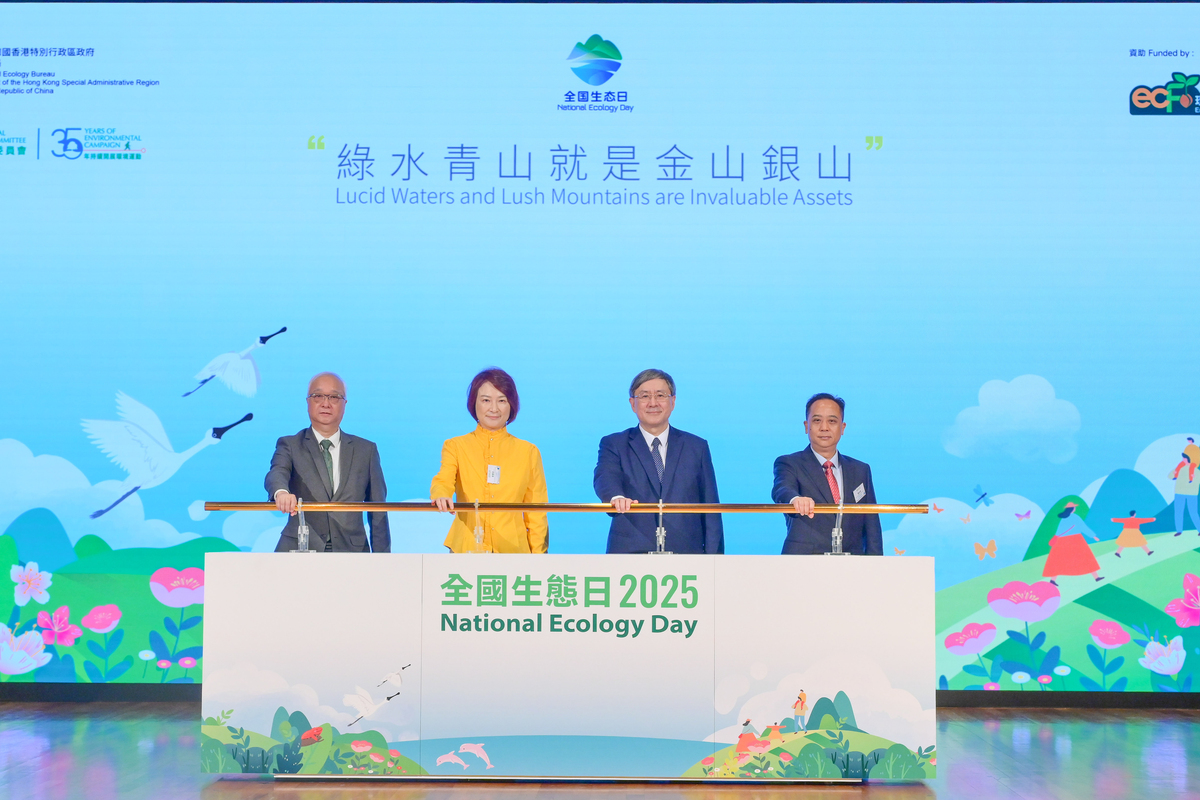 特區政府8月15日舉辦2025年全國生態日啟動禮暨研討會,為一系列環保及生態保育活動揭開序幕。政務司副司長卓永興、環境及生態局局長謝展寰、中央人民政府駐香港特別行政區聯絡辦公室教育科技部副部長葉水球為啟動禮主禮。