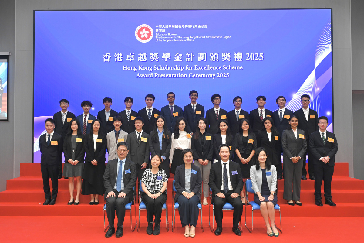 教育局局長蔡若蓮8月26日主持2025年度香港卓越獎學金計劃頒奬禮。61名得獎學生將入讀境外知名大學,其中50人升讀學士學位課程、11人升讀研究院課程。