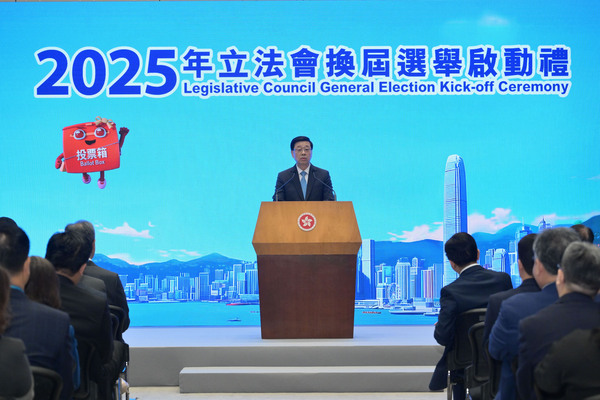 今天,我很高興出席2025年立法會選舉啟動禮,和大家一起為香港特別行政區第八屆立法會選舉揭開序幕。12月7日,香港特區將舉行第八屆立法會選舉。這是香港邁向由治及興進程中的大事,是香港加快發展經濟、改善民生的大事,是關乎你我、關乎每一位香港市民的大事。