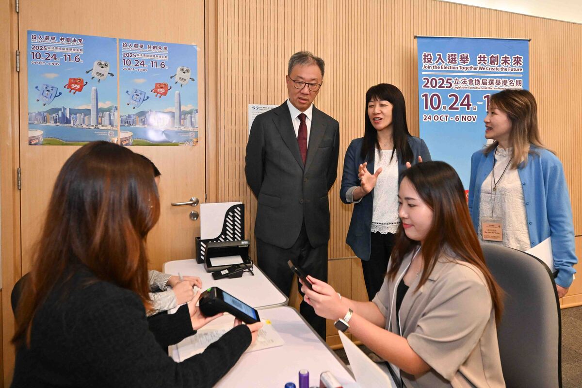2025年立法會換屆選舉提名期由10月24日開始,至11月6日結束。選舉管理委員會主席陸啟康10月23日到訪位於添馬政府總部的選舉主任辦事處,了解接收提名表格的流程和視察場地的準備情況。